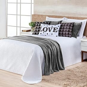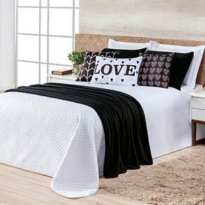 Confeccionado em tecido Microfibra 100% Políester, a nova Coleção Vitória vem trazendo um toque macio, com portas em acabamento debrum, o cobre leito com enchimento em manta dupla face, permitindo o uso dos dois lados! Lindos detalhes nas capinhas estampadas super modernas! Acompanhando porta-travesseiros e um luxuoso xale em mantinha microfibra de altíssima qualidade e uma maciez superior a tudo que já viu! Combinando tudo com a sua decoração! Produzido num rigoroso controle de qualidade, dando um toque de requinte para o ambiente, perfeito para presentear quem você ama! Confira! Contém: 01 Cobre Leito 2,15m x 2,60m 02 Porta Travesseiros Matelados (Branco) 70cm x 50cm 02 Porta Travesseiros em Mantinha (Preto) 60cm x 40cm 02 Capas de Almofadas Quadradas Estampadas 45cm x 45cm 01 Almofada Retangular Cheia Estampada Love 60cm x 40cm 01 Xale em Mantinha (Preto) 2,10m x 0,60m Composição Cobre Leito: Tecido Superior: Microfibra 100% Poliéster Tecido Inferior: Microfibra 100% Poliéster Enchimento: 100% Poliéster Composição Peças: Porta Travesseiros Matelados: Microfibra 100% Poliéster Porta Travesseiros em Mantinha: Microfibra 100% Poliéster Capas de Almofadas estampadas: Microfibra 100% Poliéster Xale: Manta Microfibra 100% Poliéster Composição do Refil: Externo: 100% Polipropileno Enchimento: 100% Poliuretano Instruções de Uso e Lavagem: Vide etiqueta do produto. Foto meramente ilustrativa. Variação das cores podem ocorrer de acordo com o monitor.