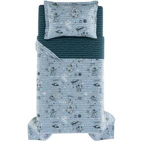 Cobreleito Casal Espacial 200 Fios Karsten Cobreleito Casal 200 Fios Karsten O jogo de colcha Espacial é uma explosão de criatividade e conforto. De um lado, o astronauta rockstar se apresenta em uma cena vibrante no espaço; do outro, uma padronagem listrada com estrelas garante versatilidade para diferentes composições. O porta-travesseiro acompanha o tema, reforçando a unidade visual. Com acabamento em matelassê e enchimento leve, esse conjunto é ideal para deixar o quarto mais lúdico e estiloso, sem abrir mão da praticidade no dia a dia. Contém:1 Cobreleito dupla face. Tamanho: 2,20m x 2,60m2 Porta Travesseiros com 3 abas. Tamanho: 50cm x 70cm. Composição: 200 fios, 100% algodão, Enchimento 100% PoliésterEstampa: EspacialMarca: Karsten Marca: Não Informado