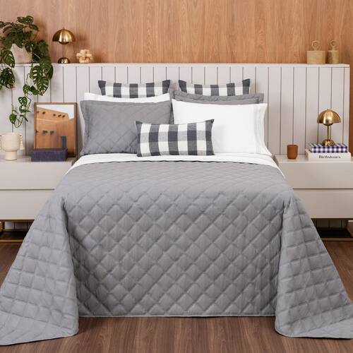 Graças à técnica de matelassê ultrassônico, cada peça da coleção apresenta um acolchoado irresistível, convidando você a se aconchegar a cada noite. Destaque para o padrão xadrez clássico e charmoso presente nas almofadas de tear, adicionando um toque de sofisticação ao conjunto.