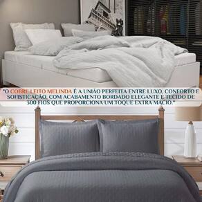 Cobreleito Queen Size 300 Fios Melinda Bordado Super Elegante COR: CINZA Cobre Leito Queen Melinda 300 Fios em Algodão - Bordado de Luxo com Toque Extra Macio Conjunto com Porta-Travesseiros Sofisticação e Conforto em Cada Detalhe