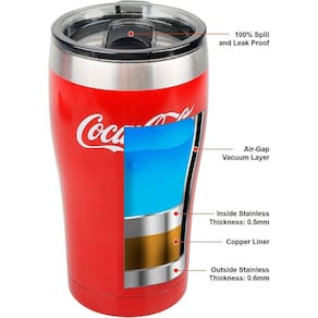 Coca-Cola Copo Térmico Aço Inoxidável Para Bebida Quente/Fria Este copo para bebidas de parede dupla foi projetado para uso com bebidas quentes e frias. Conserva bebida gelada com gelo por até 8 horas; mantém uma bebida quente por até 4 horas.