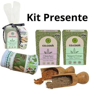 Cocook Kit Trio Presente Tempero Frango Chimichurri Pano de Prato Cocook Kit Trio Presente - Sabor, Tradição e Praticidade na Sua Cozinha O cocook Kit Trio Presente foi desenvolvido para quem aprecia boa gastronomia e funcionalidade no dia a dia. Combinando dois temperos especiais e um pano de prato de alta qualidade, este kit é ideal para realçar os sabores dos seus pratos e trazer mais praticidade à sua rotina. Inclui: Tempero Frango - Sabor Myanmar 75g : Uma seleção sofisticada de especiarias inspiradas na culinária birmanesa, com notas aromáticas e um toque ácido que realçam o sabor do frango e pratos ensopados. 100% natural, sem sódio ou gorduras. Tempero Chimichurri 75g : Uma combinação equilibrada de ervas e especiarias tradicionais do chimichurri, perfeita para realçar carnes, legumes e marinadas. Um tempero versátil que adiciona sabor autêntico e aroma irresistível às suas receitas. Pano de Prato 100% Algodão: Feito com tecido de alta qualidade e excelente absorção, este pano de prato possui barrado decorativo e estampas , garantindo um toque de charme e funcionalidade à sua cozinha. Medida Padrão 41 cm x 69 cm Com ingredientes selecionados e materiais de alta durabilidade, o Kit CoCook Trio Presente é uma opção perfeita para quem busca sabor, praticidade e um toque especial na hora de cozinhar. Especificações: Medida do pacote: 19cm x 10cm x 25cm Peso total: 200g 75g + 75g + 50g Validade dos temperos: 2 anos Garanta já o seu Leve autenticidade, sabor e elegância para sua mesa