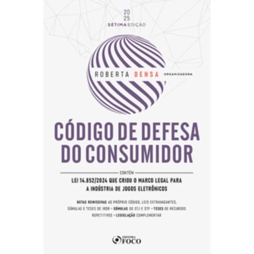 Sobre a obra Código de Defesa do Consumidor - 7ª Ed - 2025 Contém - Notas remissivas ao próprio Código, lei extravagante, súmulas e das teses de IRDR; - Súmulas do STJ e STF; - Teses de recursos repetitivos; - Legislação complementar; SOBRE A OBRA O código de defesa do consumidor entrou em vigor em setembro de 1991 com o objetivo de regular as relações de consumo, em uma época de crise econômica, inflação e problemas relacionados ao direito de concorrência. Desde então, inúmeras foram as discussões jurisprudenciais e doutrinárias, bem como as alterações legislativas que impactaram direta ou indiretamente na interpretação e integração das normas no ordenamento jurídico brasileiro. Dentre as mudanças, ressaltamos a entrada em vigor do código civil em 2003 e do Código de Processo Civil, com especial ênfase ao incidente de resolução de demandas repetitivas (IRDR). De fato, sendo a lei consumerista principiológica, o trabalho da jurisprudência mostrou-se imprescindível para a compreensão do conteúdo e alcance das normas nele contidas. Por essa razão, essa obra traz uma inovação e contempla uma lista com as teses firmadas em Recursos Repetitivos no Superior Tribunal de Justiça que são aplicáveis às relações jurídicas de consumo, bem como a remissão dessas em cada um dos artigos do código de defesa do consumidor. Além das teses firmadas em Recursos Repetitivos, a organização conta com um detalhado índice sistemático; remissões ao próprio código e as leis extravagantes; texto na íntegra do código de defesa do consumidor, índice remissivo indicando o assunto e o artigo da norma, legislação complementar e Súmulas do STJ. Assim, a Editora FOCO, acompanhando o projeto gráfico e a apresentação da Constituição Federal, Vade Mecum de Direito Digital e Vade Mecum do Agronegócio, apresenta a organização do Código de Defesa do Consumidor com a intenção de oferecer ferramenta de pesquisa aos profissionais e acadêmicos da área jurídica. Boa leitura! a organizadora Roberta Densa