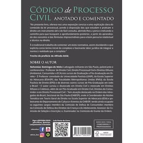 Sobre a obra Código de Processo Civil - Anotado e Comentado - 4ª Ed – 2025 “No presente livro, oferece-nos uma exposição concisa e uma explicação clara do conteúdo da lei processual , pondo à disposição dos que estudam e praticam o direito um instrumento útil e de fácil consulta, abrindo-lhes a porta e indicando o caminho para que busquem o aprofundamento posterior, a partir do aprendizado dos conceitos e das fórmulas imprescindíveis para o bom percurso intelectual e técnico no direito . É o tradicional trabalho de comentar um texto normativo, assim elucidando o que explicita como termo inicial do complexo e fascinante labor jurídico de integrar a norma à realidade que a completa.” Trecho do prefácio de Alfredo Attié. Autor Nehemias Domingos de Melo