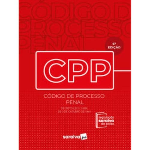 Data de fechamento da obra: 3-7-2023AEditora Saraiva Jur, líder no mercado de livros jurídicos e sempre atenta àsnecessidades dos profissionais e interessados neste meio, apresenta a novaedição da obra Código de Processo Penal Legislação Saraiva de Bolso. Estaobra é composta pelo Decreto-lei n. 3.689, de 3 de outubro de 1941, sem notaseditoriais, para rápida consulta no dia a dia. ÚltimasAtualizações no texto do Código de Processo Penal: - Suspensão do prazo processual (Lein. 14.365, de 2-6-2022)