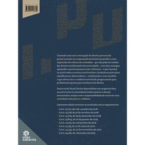 Trazendo uma nova concepção de direito processual penal centrado na compreensão do fenômeno jurídico como expressão da cultura da sociedade – que não pode ser isolado das demais manifestações da comunidade –, esta obra consegue apreender o posicionamento dos tribunais – o que é central na atual ordem constitucional brasileira, fundada em princípios republicanos e democráticos –, combinando-o com a análise, o que oferece rico e confiável material de pesquisa tanto para profissionais quanto para estudantes de direito. Desse modo, Fauzi Choukr disponibiliza essa magistral obra, acessível tanto à comunidade jurídica quanto a demais interessados, sempre com a responsabilidade de construir uma sociedade mais justa e solidária.
