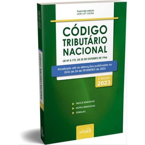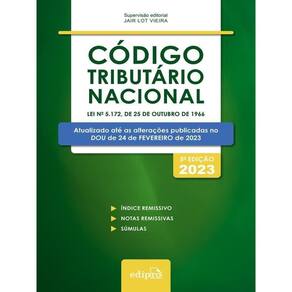 SUPERLANÇAMENTO: Código Tributário Nacional – Lei nº 5.172, de 25 de outubro de 1966 Atualizado até a Lei Complementar nº 194, de 23 de junho de 2022, e até o DOU de 24 de fevereiro de 2023 Normas complementares Resoluções do Senado Federal Súmulas e Súmulas Vinculantes do STF Súmulas do STJ Índice remissivo Notas remissivas