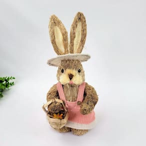 Coelha De Palha Rosa 35x15x14cm Decoração De Páscoa Adicione Charme Exclusivo à Sua Páscoa com a coleção de Coelhos de Palha Inigual Decor - Luxo e Tradição Entrelaçados Elevando a decoração da Páscoa a um novo patamar, a Inigual Decor apresenta Coelho de Palha, uma peça única e encantadora para pessoas exigentes. Combinando o toque rústico da palha com a sofisticação Inigual, este coelho se tornará o ponto alto da sua celebração. Por que escolher nossos Coelhos de Palha
