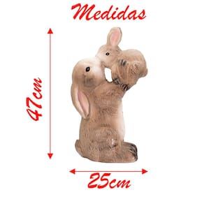 Coelha de Páscoa Cerâmica Coelhinha com Filhote Decoração 47cm