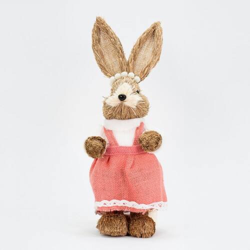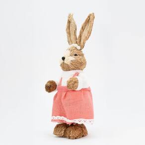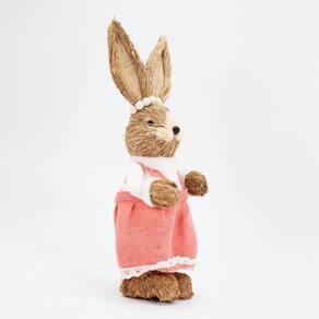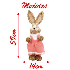 Coelha De Páscoa Coelhinha Decoração em Palha 39cm -