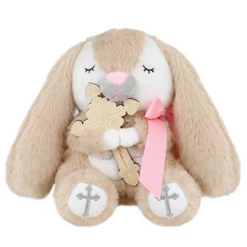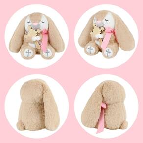 Coelhinho de pelúcia orando com cruz, presente perfeito de batismo, batizado ou Páscoa para crianças.