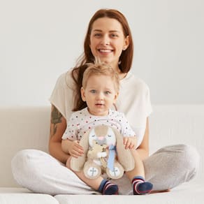 - Faça deste coelho orante sua escolha para o batismo de uma menina ou um presente de batismo de menino. Também dá um charme doce às celebrações da Páscoa. Dê o presente de oração e amor.