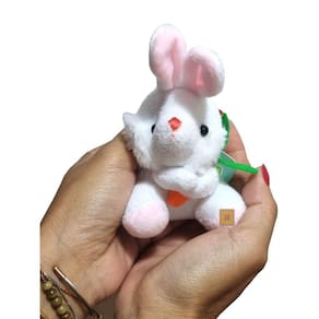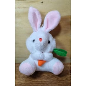 Dimensão Coelho de Pelúcia: 11,5 cm x 7 cm x 5 cm (Altura x Largura x Espessura)