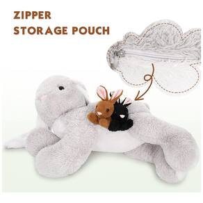 Além disso, o coelhinho gigante de pelúcia também funciona como um travesseiro confortável. A fofa coelhinha mamãe com tamanho generoso e enchimento macio permite que seja usada como travesseiro macio, proporcionando suporte e conforto na hora da soneca, longas viagens de carro ou até mesmo como peça decorativa na cama ou sofá.