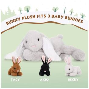 A coleção Cozy Bunny Family é composta por adoráveis coelhinhos de pelúcia, feitos com material de alta qualidade que proporciona uma experiência macia e abraçável para crianças e adultos. O corpo recheado com toque suave e natureza fofinha torna os abraços ainda mais doces ou uma adição aconchegante a qualquer berçário.