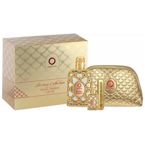 Coffret Luxury Collection Orientica Royal Amber Perfume Feminino Eau de Parfum 80ml + Miniatura 7,5ml + Refil 10ml+ Necesserie. Uma combinação surpreendente, atraente e magnífica. Luxury Collection Royal Amber de Orientica é uma fragrância luxuosa repleta de ousadia e sedução. Seu aroma abre com notas frescas de Bergamota e Acorde Verde, enquanto o coração se expressa através de uma mistura elegante de Melão, Abacaxi, Gourmand e Âmbar. Por fim, a base amadeirada afunda ainda mais com a fusão de Baunilha e Almíscar.