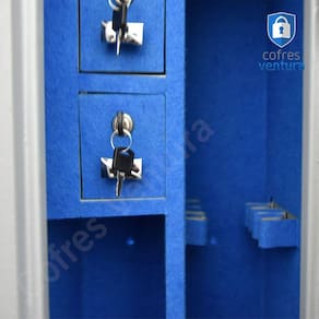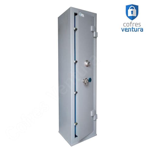 MEDIDAS EXTERNAS: Altura: 130 Centímetros; Largura: 30 Centímetros; Profundidade: 30 Centímetros; MEDIDAS INTERNAS Altura: 127 Centímetros; Largura: 29 Centímetros; Profundidade: 20 Centímetros; PESO 30 kg; Segredo mecânico de 03 combinações e fechadura tipo tetra; Estrutura do cofre: Corpo fabricado em chapa de 1,2mm e porta em chapa 3mm. Porta com 04 travas maciças de 18mm de diâmetro. Pintura em esmalte sintético. Gavetas com fechaduras. O cofre já vai com 04 furos na parte de trás para fixação na parede. Marca: COFRES VENTURA