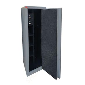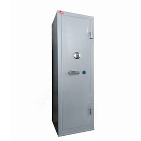 Estrutura do cofre: Corpo fabricado em chapa de 1,2mm e porta em chapa 2mm. Porta com 04 travas maciças de 18mm de diâmetro. Pintura em esmalte sintético. Gavetas com fechaduras. O cofre já vai com 04 furos na parte de trás para fixação na parede.