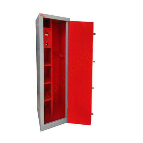 Estrutura do cofre: Corpo fabricado em chapa de 1,2mm e porta em chapa 2mm. Porta com 04 travas maciças de 18mm de diâmetro. Pintura em esmalte sintético. Gavetas com fechaduras. O cofre já vai com 04 furos na parte de trás para fixação na parede.