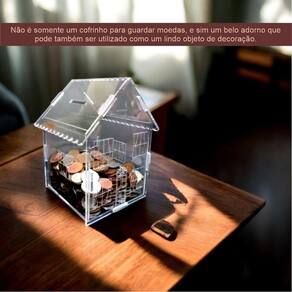 Geralmente, as dimensões da caixa são compactas, facilitando a colocação em ambientes domésticos ou no escritório, ao mesmo tempo que oferece um espaço suficiente para guardar moedas e notas de forma organizada.