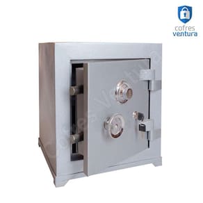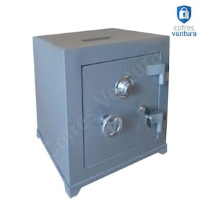 MEDIDAS EXTERNAS: Altura: 40 Centímetros; Largura: 37 Centímetros; Profundidade: 33 Centímetros; MEDIDAS INTERNAS Altura: 27 Centímetros; Largura: 32 Centímetros; Profundidade: 20 Centímetros; PESO 50 kg; Segredo mecânico de 03 combinações e fechadura tipo moveis; Estrutura do cofre: Corpo fabricado em chapa externa de 1mm camada de concreto, chapa interna de 0,9 mm e porta em chapa 1,2mm. Porta com 02 travas maciças de 18mm de diâmetro. Pintura em esmalte sintético. Marca: COFRES VENTURA