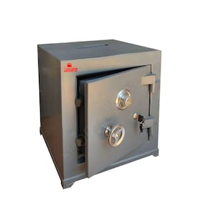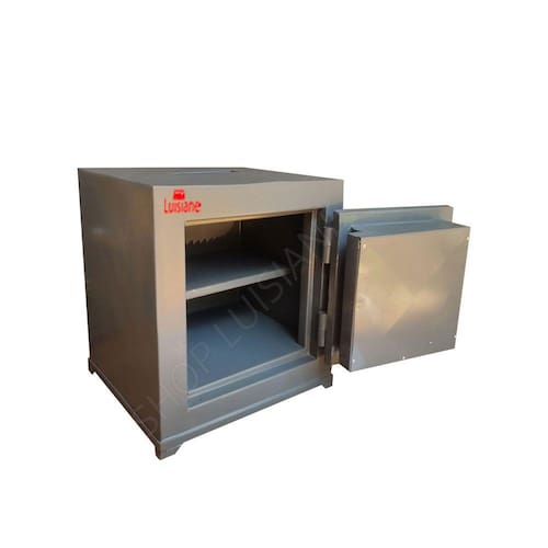 Estrutura do cofre: Corpo fabricado em chapa de 1mm e porta em chapa 2mm. Porta com 02 travas maciças de 18mm de diâmetro. Pintura em esmalte sintético. metros;