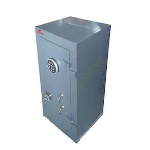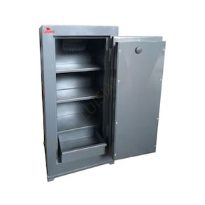 Estrutura do cofre: Corpo fabricado em chapa de 1mm e porta em chapa 2mm. Porta com 03 travas maciças de 18mm de diâmetro. Pintura em esmalte sintético.