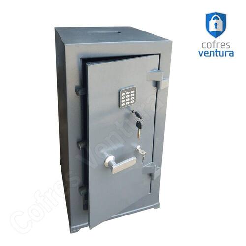 MEDIDAS EXTERNAS: Altura: 80 Centímetros; Largura: 37 Centímetros; Profundidade: 33 Centímetros; MEDIDAS INTERNAS Altura: 62 Centímetros; Largura: 32 Centímetros; Profundidade: 20 Centímetros; PESO 90 kg; Fechadura eletrônica de 04 a 06 digitos, NÃO POSSUI RETARDO - LOGO NAO ATENDE CASAS LOTERICAS; Estrutura do cofre: Corpo fabricado em chapa externa de 1mm camada de concreto, chapa interna de 0,9 mm e porta em chapa 3mm. Porta com 02 travas maciças de 18mm de diâmetro. Pintura em esmalte sintético. Marca: COFRES VENTURA