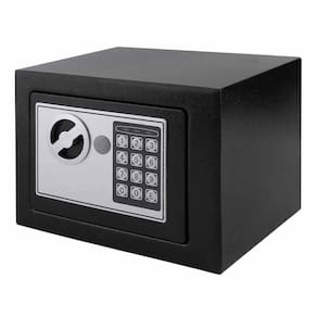 Cofre Digital Com Fechadura Eletrônica Teclado Senha Sos E Chave Em Aço Inoxidável Descrição O Cofre Eletrônico foi desenvolvido pensando em segurança, praticidade e eficiência. Construído em aço resistente, possui trava eletrônica para aumentar sua segurança. RESISTÊNCIA