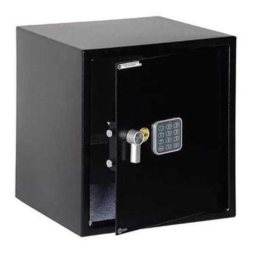 Possui dobradiças reforçadas, travas a prova de impacto e acabamento em pintura epóxi. - Ideal para escritórios - Mecanismo de travamento com travas motorizadas em aço maciço - Abertura de emergência através de chave de segurança Alimentação: Alimentação por 4 pilhas AA Travas: Travas em aço maciço à prova de impacto Teclado: Teclado Membrana Formas de Abertura: Senha Mestre e Senha de Usuário (3 a 8 dígitos) ou Chave de Segurança Número de usuários: uma Senha Acabamento: Acabamento na cor preta com pintura em base Epoxi Acompanha: 02 chaves mecânicas de segurança Dimensões externas AxLxP: 39,0x35,0x36,0 cm Dimensões internas AxLxP: 38,0x34,0x31,0 cm Capacidade: 35 lts Peso: 14,6 kg Conteúdo da Embalagem: 02 chaves de segurança, buchas e parafusos para instalação, 04 baterias AA e Manual de Operação. Garantia: 24 Meses.