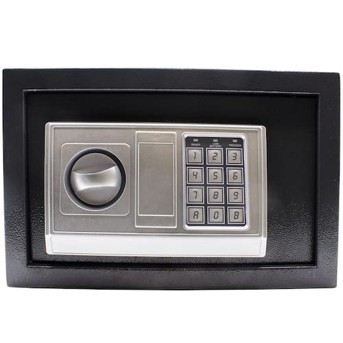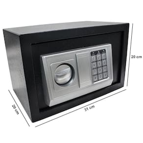 Hoje em dia é sempre importante ter um local seguro para guardar seus pertences de valor. Este cofre eletrônico digital permite o armazenamento de objetos pequenos e médios, como moedas, notas, joias, livros de anotações importantes, objetos de valor sentimental, objetos para defesa pessoal e muito mais. É fabricado em aço resistente, com pintura anti ferrugem, que garante muito mais durabilidade para seu cofre. A abertura do cofre pode ser feita tanto através de senha eletrônica quanto pela chave, que acompanha o produto. Possui 2 furos na parte traseira e 2 furos na parte inferior, permitindo a fixação tanto em paredes quanto em superfícies horizontais.