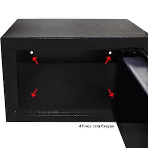 Este cofre deve ser embutido ou fixado na parede para maior segurança. Não é um cofre portátil. Seu sistema eletrônico de segurança bloqueia automaticamente o teclado após 3 tentativas de abertura com a senha errada. Na primeira vez bloqueia por 20 segundos. Na segunda, por 5 minutos, garantindo máxima segurança para seus bens.