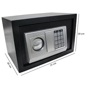 Hoje em dia é sempre importante ter um local seguro para guardar seus pertences de valor. Este cofre eletrônico digital permite o armazenamento de objetos pequenos e médios, como moedas, notas, joias, livros de anotações importantes, objetos de valor sentimental, objetos para e muito mais. É fabricado em aço resistente, com pintura anti ferrugem, que garante muito mais durabilidade para seu cofre. A abertura do cofre pode ser feita tanto através de senha eletrônica quanto pela chave, que acompanha o produto. Possui 2 furos na parte traseira e 2 furos na parte inferior, permitindo a fixação tanto em paredes quanto em superfícies horizontais. Este cofre deve ser embutido ou fixado na parede para maior segurança. Não é um cofre portátil. Seu sistema eletrônico de segurança bloqueia automaticamente o teclado após 3 tentativas de abertura com a senha errada. Na primeira vez bloqueia por 20 segundos. Na segunda, por 5 minutos, garantindo máxima segurança para seus bens. - Possui 2 travas em aço maciço - Corpo, porta e todas as peças internas metálicas com tratamento fosfatizante e anti-ferrugem - Abertura e fechamento eletrônico via código de 3 a 8 dígitos de fácil programação, oferecendo segurança máxima. - Forração interna inferior com feltro - Funciona com 04 pilhas alcalinas AA Não inclusas - Acompanha kit de fixação com 2 parafusos e buchas de aço. - 2 Chaves para abertura de emergência, em caso de esquecimento da senha ou falta de bateria. - Teclado com beep sonoro e LED indicador da operação - Possui 2 furos na parte traseira e 2 furos na parte inferior, possibilitando a fixação em paredes ou superfícies horizontais. Medidas externas: Altura: 20cm Largura: 31cm Profundidade: 20cm Espessura do corpo: 1,5mm Espessura da porta: 3mm Medidas internas: Altura: 19,5 cm Largura: 29 cm Profundidade: 18,5 cm Peso: 4,248kg Dimensões da embalagem: 33x24x23 cm Peso: 4,600 kg Cor: Preto Itens inclusos: 1 cofre Manual Código do produto BM96-X Imagens ilustrativas. As tonalidades podem variar. Marca: Não Informado