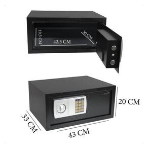 Cofre Eletrônico Digital Preto Grande Notebook Cm Prateleira Cor: Preto Cofre Eletrônico Digital em Aço EK200N Grande para Notebook Preto Com duas chaves de segurança, ideal para laptop. Excelente acabamento e designer moderno. Uma ótima opção para residências, escritórios, hotéis, pousadas entre outros estabelecimentos. Especificações: -modelo ek200n -cor: Preto -tamanho axlxp : 20x44x33 -espessura do corpo: 1,5mm -espessura da porta: 4,0mm -fechadura digital ou mecânica com chaves -peso: 9,0Kg -máximo de 01 unidade por cada compra realizada Marca: Xsafe