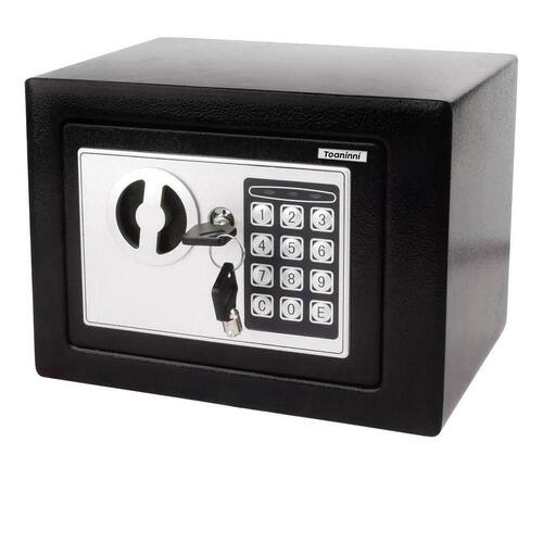 Cofre Eletrônico Digital Teclado Com Senha + 2 Chaves To17 Cofre Eletrônico Digital Marca Toaninni - TO17 Cofre Digital; Senha alterável de 3 a 8 dígitos; Teclado com bip sonoro e LED indicador da operação; Bloqueio do teclado ao erro de senha em três tentativas; Estrutura sólida em aço; Abastecimento de pilhas interna; Travamento com dois pinos ferrolhos horizontais; Excelente acabamento com revestimento; Funciona com 4 pilhas AA; Pintura epoxi; Espessura da porta: 3mm; Espessura do corpo: 1mm. Medida externa: 17 cm. Altura 23 cm. Largura 17,5 cm. Profundidade Medida interna utilizável: 16,8 cm. Altura 22,8 cm. Largura 12,3 cm. Profundidade Medida embalagem: 20 cm. Altura 25 cm. Largura 20 cm. Profundidade Peso produto: 2,94 kg. Peso total: 3,18 kg. Acompanha: Cofre 2 parafusos 2 chaves Manual em português 4 pilhas AA