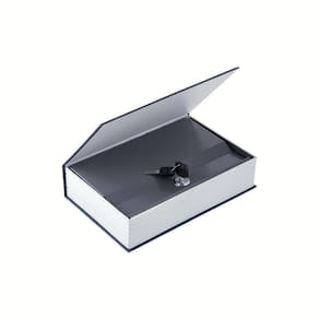 Cofre Livro Camuflado 18 CmDimensões da peça: 18 x 11,5 x 5,5cm Dimensões da embalagem: 18,3 x 12 x 6cm Material: abs e aço carbono Cor: cinza com brancoPode haver variação de cor, de acordo com o monitor. Imagens meramente ilustrativas.