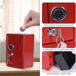 Cofre Metal Portatil Trava Secreta Moedas Documentos Itens Pessoais Infantil Adulto Cofrinho Vermelho