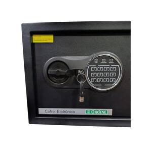 O Cofre Office Line Aço Digital Preto 16L Ordene é ideal para manter seguros os itens e acessórios que são importantes para você.Este cofre possui um painel eletrônico para digitação de senha. O acionamento das travas é manual, o que garante um funcionamento simples e eficiente. Além disso, são fornecidas duas chaves de emergência codificadas para que o cofre possa ser aberto em caso de esquecimento da senha ou pilhas descarregadas.