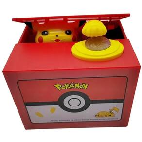 Excelente opção para decorar o ambiente! Cofre automático com um Pikachu Pokémon muito meigo escondido na caixa. Você coloca uma moeda sobre o pratinho e o Pikachu sai da caixa e rouba a moeda. Ótima e divertida maneira de ensinar as crianças a poupar dinheiro e juntar moedas. Fica lindo e chama muito a atenção sobre os balcões de bares, padarias, lojas, ONGs, escritórios, quermesses, secretarias de escola e qualquer outro local que recolha doações ou caixinha para os funcionários. Também estimula a doação para artistas e performers de rua. Um lindo presente para adultos e crianças. Para tirar as moedas é só abrir o compartimento embaixo. Funciona com duas pilhas pequenas (AA).