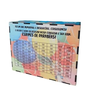 Com um design elegante e a arte inspiradora, esse cofre não é apenas um objeto para economizar, mas também um símbolo do seu sonho e da sua dedicação. A cada depósito feito, você verá sua meta de R 3.500 se aproximando mais e mais, tornando a jornada de juntar o dinheiro algo prazeroso e emocionante. A arte do cofre vai te lembrar, a cada olhar, de que a realização do seu sonho está ao seu alcance.