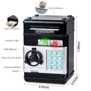 💥?2022 Hot Gifts - Todo mundo tem seu cofrinho. O cofrinho ReFasy tem uma aparência elegante, pode cultivar o hábito de seu filho de economizar dinheiro desde a infância.? 💥 💝 Espaço de grande capacidade, armazenamento para atender aos desejos das crianças, ao mesmo tempo, também pode conter alguns pequenos itens particulares. 💝 Com este exclusivo banco eletrônico de moedas Money Safe, seu filho pode armazenar o dinheiro que ganha fazendo projetos domésticos. 💝 De qualquer forma, se você esquecer sua senha, basta retirar as baterias e reiniciar, a senha retornará para 0000. 💝 E como cofrinho para meninos e meninas, não é apenas um enfeite, mas também um brinquedo e parceiro de seu filho, até mesmo acompanhando seu filho até a idade adulta. 💝 É a melhor opção de presente para festivais de aniversário e feriados, Dia da Páscoa, Dia das Crianças, Halloween, Ação de Graças, Natal e Ano Novo, etc. (Recomendado para maiores de 3 anos.) Como alterar a senha: :Digite a senha atual (padrão 0000) para abrir a porta de segurança; :Pressione longamente o botão “*”, não o solte, a luz vermelha e a luz verde piscarão; ? Insira 4 novas senhas em 15 segundos, de acordo com o “#” confirme o armazenamento da nova senha, a luz vermelha pare de piscar, solte o botão “*”, altere a senha com sucesso; ?:15 Em segundos, o programa será interrompido e deverá ser reiniciado; ? Solte o botão “*” e feche a porta. O pacote inclui: ? 1 x Cartoon Password Piggy Bank ? 1 x manual de uso em inglês 💥🎉 Surpresa: o banco de dinheiro branco tem duas pequenas funções especiais: função de reprodução de músicas infantis e função de verificação de dinheiro. Quando a nota é colocada no rolo de notas, a canção infantil será tocada automaticamente. Ligue o interruptor do detector para distinguir a autenticidade das notas. - 💴🎁?Materiais de alta qualidade?: plástico ABS ambiental; design de simulação seguro, sem odor, resistente e que não quebra facilmente. (Nota: Estamos atualizando gradualmente a embalagem externa dos produtos existentes, mas a quantidade e o tipo não serão alterados. Tanto a embalagem antiga quanto a nova são oficiais e genuínas, sinta-se à vontade para comprar e usar.) - 💴🎁?Cofrinho de senha?: Quatro senhas eletrônicas de proteção; se você pressionar a senha errada, ela será emitida. Só será aberta quando você digitar a senha correta de 4 dígitos, a luz verde acenderá e você poderá girar a maçaneta no sentido horário e abrir a porta. (Padrão: 0000, senhas alteráveis conforme desejar). - 💴🎁?Caixa para economizar dinheiro de alta capacidade?: este cofrinho pode armazenar 600 moedas ou 100 moedas de papel-moeda. Faça com que as crianças planejem guardar dinheiro de bolso, ajudando muito as crianças a desenvolverem o bom hábito de economizar dinheiro. - 💴🎁?Rolagem automática de papel-moeda?: insira o papel-moeda no compartimento em cima do banco de dinheiro do caixa eletrônico infantil, ele pode ser enrolado automaticamente no caixa eletrônico. Fácil de usar para as crianças. (Mas não funciona se o papel for muito velho ou muito macio). - 💴🎁?Um presente perfeito?: as crianças vão adorar receber este ótimo banco para economizar dinheiro. É divertido e educativo e ensina a importância de economizar. É o melhor presente para seu presente de aniversário, presente de Natal, presente de Ano Novo, prêmio, recompensa ou qualquer outro presente de Natal. (Recomendado para maiores de 3 anos.)
