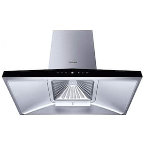 A coifa de embutir sob armário ou de parede Robam de 91 cm em aço inoxidável foi desenvolvida para exaustão em cozinhas residenciais com fogões de 36 polegadas, oferecendo ventilação de alta capacidade para remoção de fumaça, gordura e odores. O equipamento utiliza motor BLDC de velocidade variável e é compatível com instalação em sistema duto ou em configuração recirculante com filtros de carvão ativado adequados à linha do fabricante.