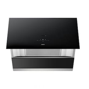 O desenho de sucção inclinada e a tela de coleta de fumaça de grande área aproximam a entrada de ar da superfície de cozimento, contribuindo para captar vapores de todos os queimadores e limitar a dispersão de fumaça no ambiente. O acabamento em aço inox escovado e vidro temperado preto é resistente a riscos e respingos e permite limpeza externa com pano macio, água e sabão neutro, mantendo o aspecto visual ao longo do uso.