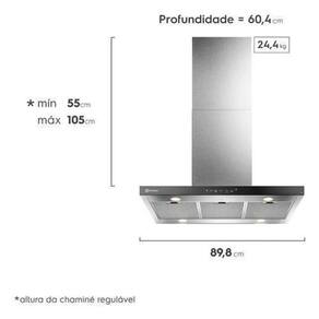 Outra excelente vantagem é que esta coifa de ilha conta com um timer que oferece a comodidade de programar o tempo do seu funcionamento, permitindo que ela desligue automaticamente, proporcionando maior conveniência e economia de energia.