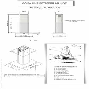 Altura de instalação recomendada: Mínimo 65 cm - Máximo 75 cm (entre fogão e coifa)