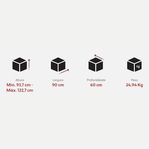 - Tamanho: Altura mínima 93,7cm & Altura máxima 122,7cm (Regulável) | Largura 90cm | Profundidade 60cm