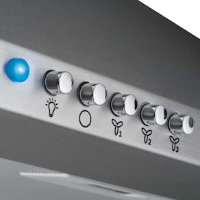 A coifa 60CX da Electrolux possui controle por botões, permitindo selecionar diretamente a velocidade desejada, luz indicadora de funcionamento e filtro metálico lavável em lava-louças, que capta as partículas de gordura em suspensão.
