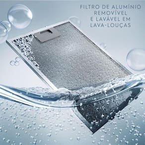 Filtragem Dupla Filtros de alumínio removíveis e também laváveis em lava-louças, que capturam e retém até 75%4 da gordura. Filtro de carvão ativado mantém sua cozinha livre de cheiros indesejados.