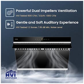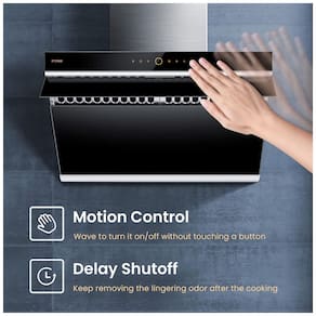 Recursos e tecnologias: Motores DC duplos, design inclinado de sucção, placa de captura com abertura automática a 90°, comando por toque, ativação por movimento, 4 velocidades, função desligamento automático com atraso, iluminação LED, filtro metálico tipo baffle removível, copo coletor de gordura de grande volume