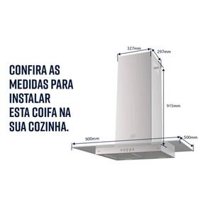 Design em Vidro e Inox: Produzida com materiais de alta qualidade, a coifa adiciona elegância à sua cozinha, complementando sua decoração de forma única.